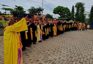 | Penumpangan tangan saat Peresmian dan Pentahbisan oleh para pendeta di depan halaman Gedung Gereja Toraja Jemaat Bintaro. (dok.rus) |